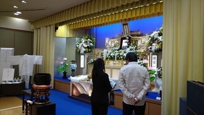館内では、家族葬・親族葬でもご利用いただける「やすらぎベーシック祭壇」を展示し、メインホールや親族室など、個別対応でゆっくりとご案内させていただきました。