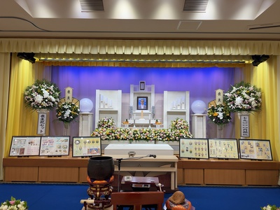 館内では、家族葬や親族葬など少人数のお葬式にご利用して頂ける祭壇を展示し、ホールや親族室など、個別対応でゆっくりとご案内させていただきました。