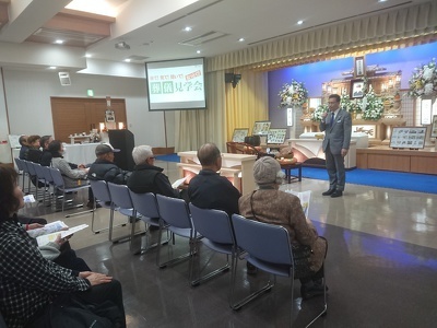 家族葬をテーマに会館支配人より昨今のお葬儀事情や葬儀形態についてお話をいただきました。